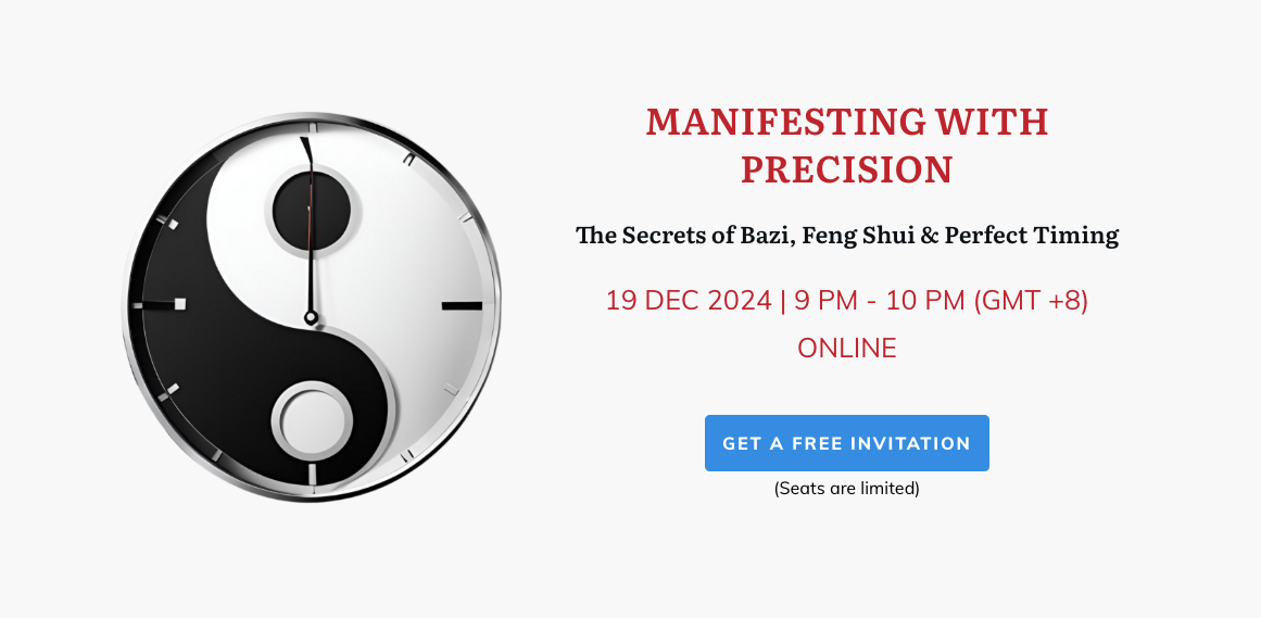 Присоединяйтесь к нам на семинаре «Манифестация с точностью до мелочей: Секреты Ба Цзы, Фэн Шуй и идеального выбора времени» - семинар, который поможет вам сориентироваться в непредсказуемой энергии 2025 года и обратить ее себе на пользу. Благодаря объединенной силе древнего Ба Цзы, Фэн Шуй и точному выбору дат вы научитесь раскрывать свой потенциал личного богатства и заложите основу для мощных, долговременных проявлений.